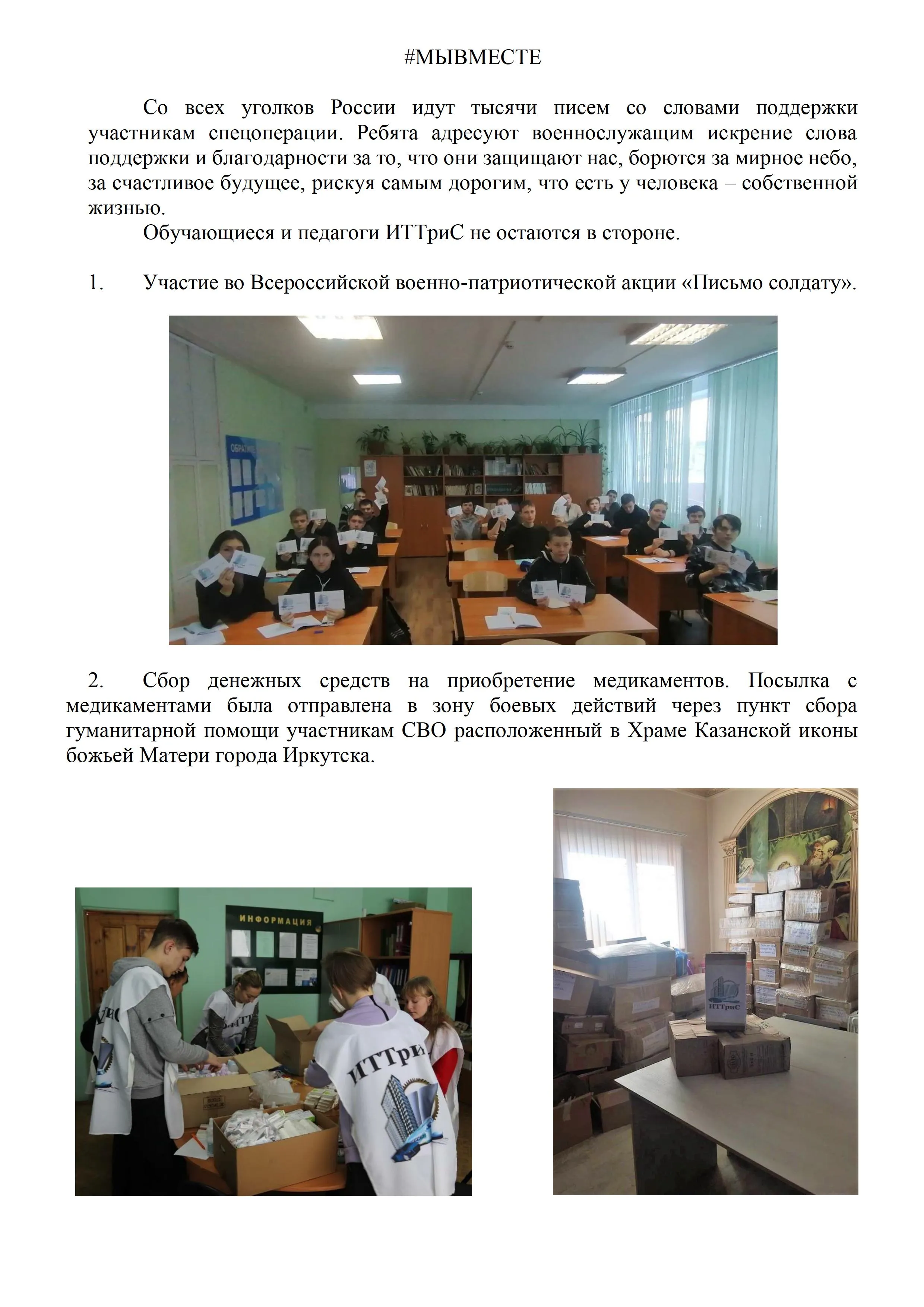 Обучающиеся и педагоги ИТТриС не остаются в стороне.