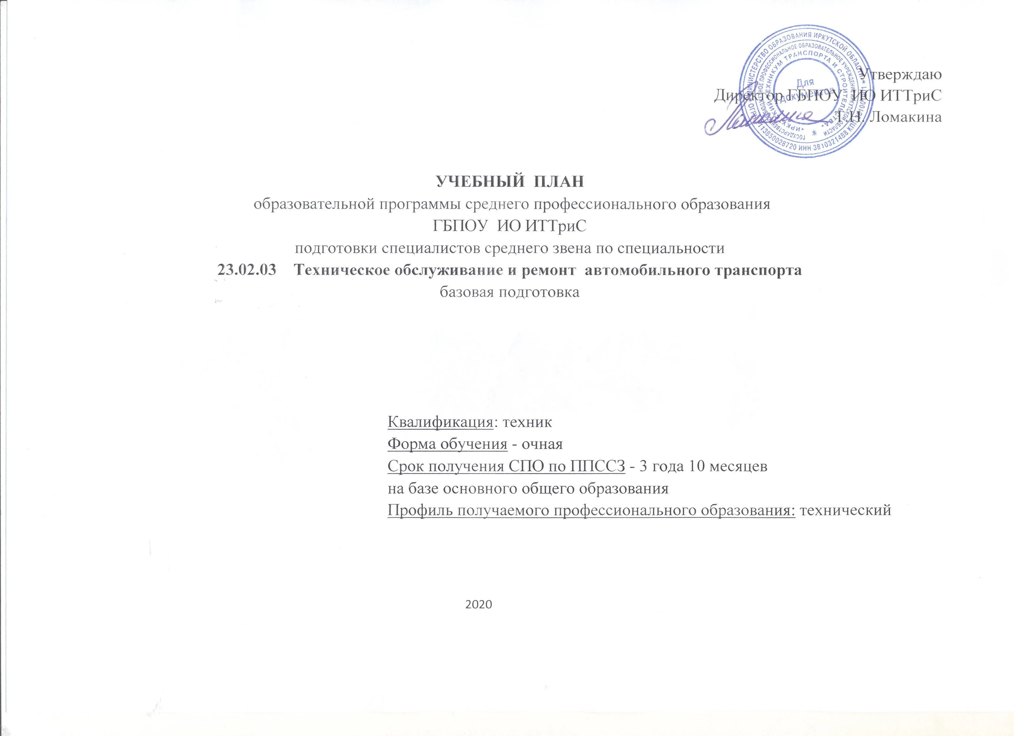 | 23.02.03 | Техническое обслуживание и ремонт автомобильного транспорта | Среднее профессиональное образование (СПО) | Очная |