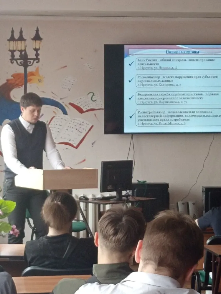 22 апреля студенты нашего техникума получили уникальную возможность узнать о защите прав потребителей финансовых услуг из первых рук. В рамках «Марафона по финансовой грамотности» перед аудиторией выступил Парыгин Антон Владимирович — начальник отдела защиты прав потребителей Управления Роспотребнадзора по Иркутской области.